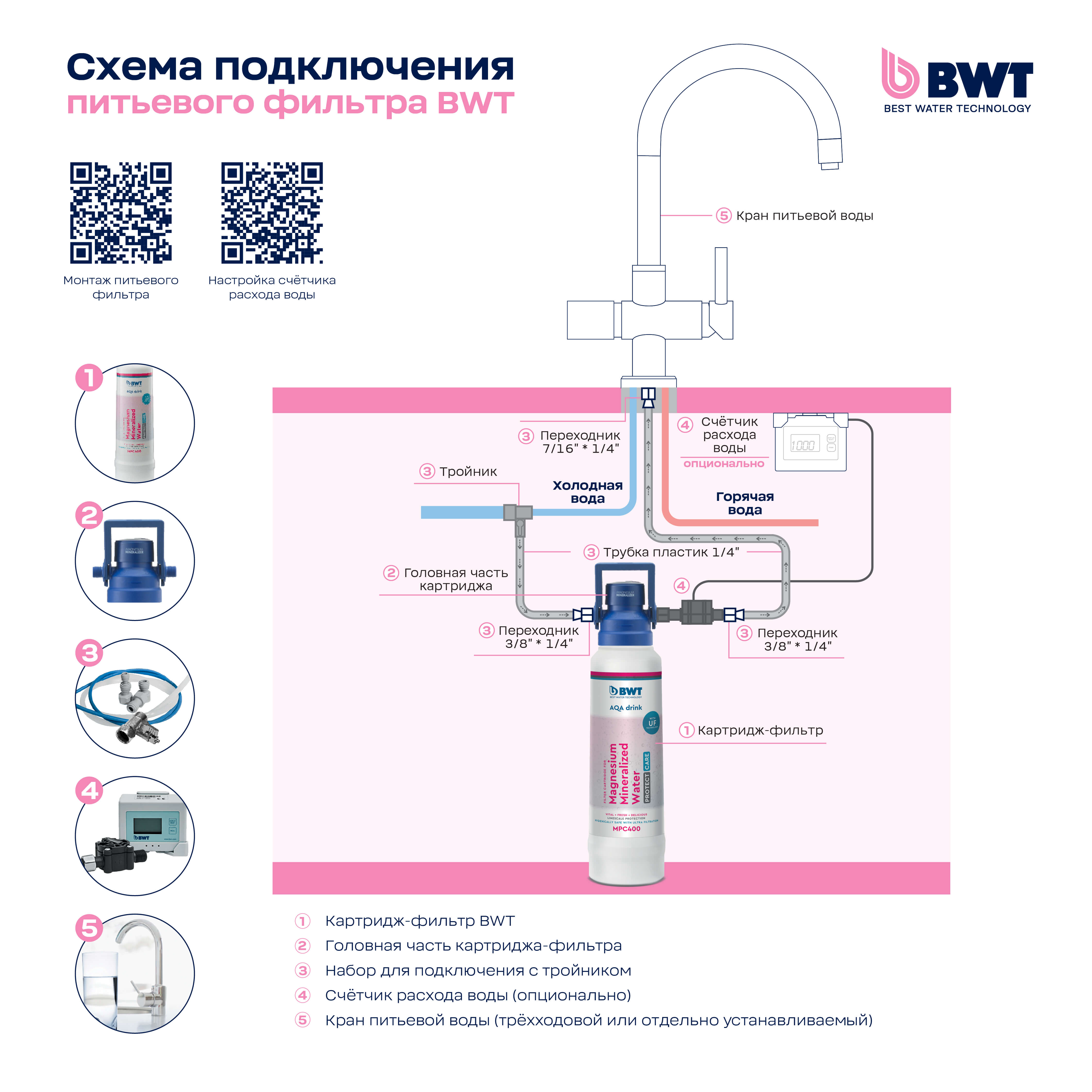 1. Фильтр BWT MPC - фильтр доочистки питьевой воды с ультратонкой мембраной 0,02 мкм, благодаря которой происходит удаление таких мельчайших частиц как вирусы, бактерии и микропластик. С опцией умягчения воды.