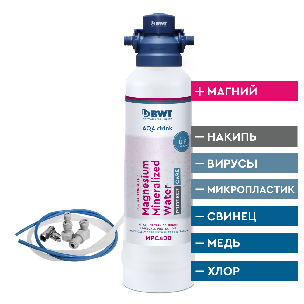 1. Фильтр BWT MPC - фильтр доочистки питьевой воды с ультратонкой мембраной 0,02 мкм, благодаря которой происходит удаление таких мельчайших частиц как вирусы, бактерии и микропластик. С опцией умягчения воды.