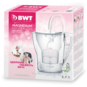 Ежедневно употребляя 2,7 литров воды, обогащенной магнием с помощью фильтра BWT, вы получаете до 20% суточной потребности организма в этом ценном минерале. Магний, растворенный в воде, особенно полезен, так как легко усваивается организмом.