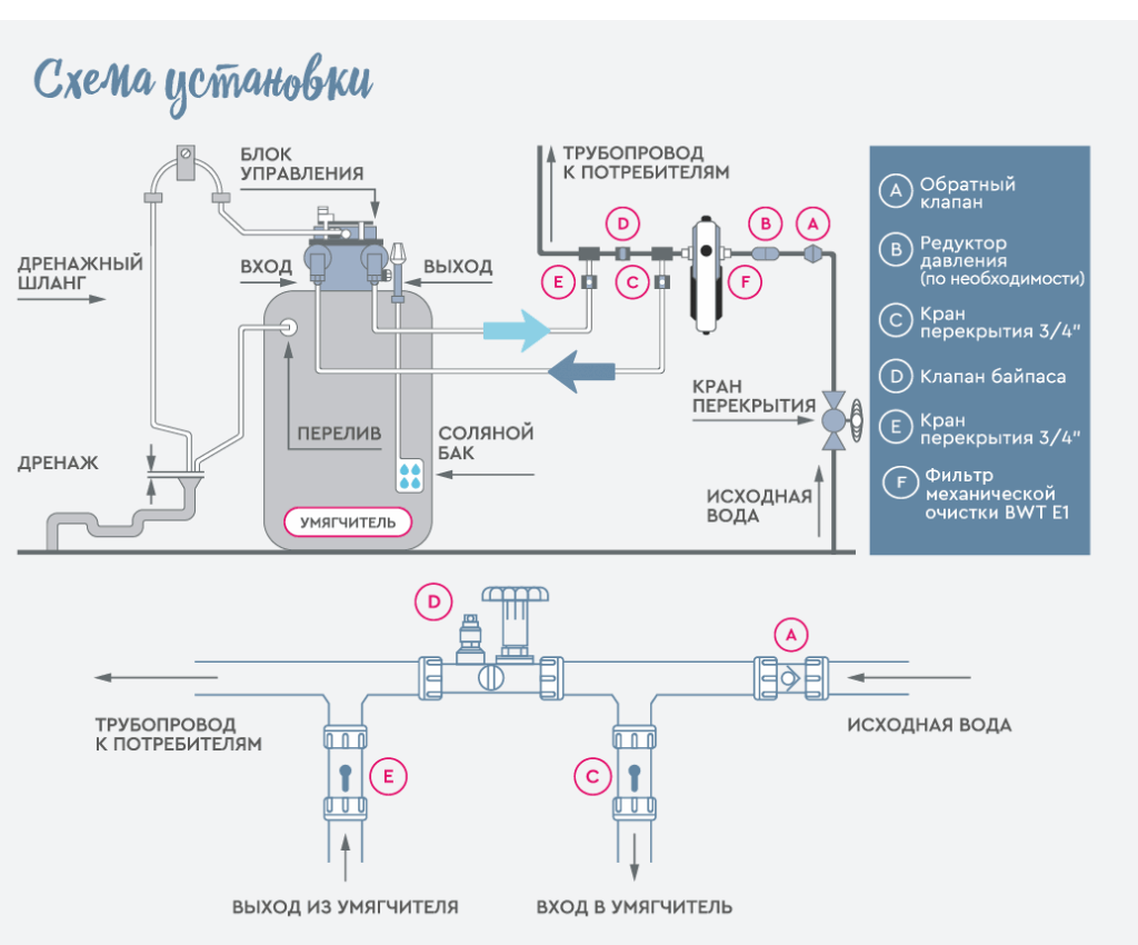 Умягчитель рассчитан на семью из нескольких человек..