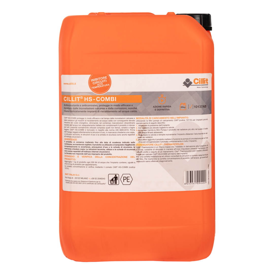 Cillit-HS 23 COMBI используется для нагревательных систем с температурой до 80°C; для систем, работающих с более высокими температурами, рекомендуется использовать средство Cillit-HS 180. Не применяется в системах с антифризами.