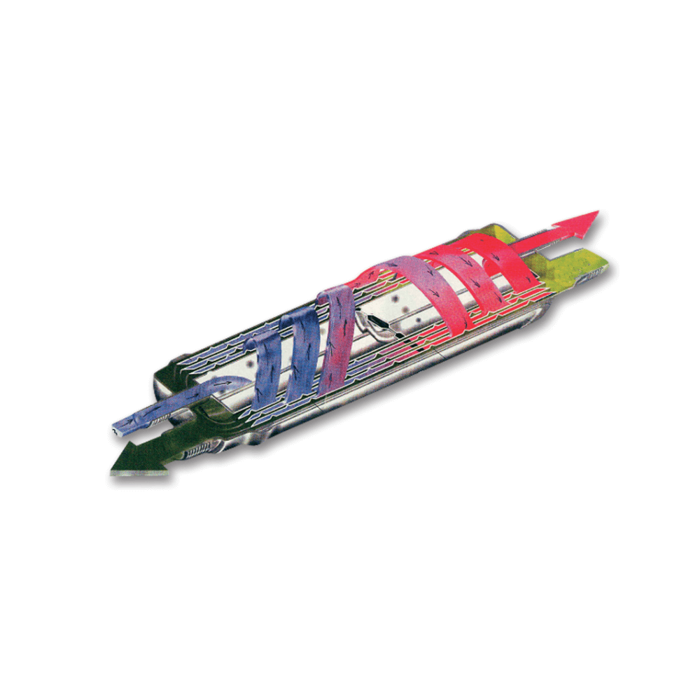 Пластины теплообменника имеют специальные турбулизирующие выступы, которые предотвращают формирование слоистого потока и создают оптимальную турбулентность. Это обеспечивает максимальный коэффициент теплопередачи и высокую энергоэффективность.
