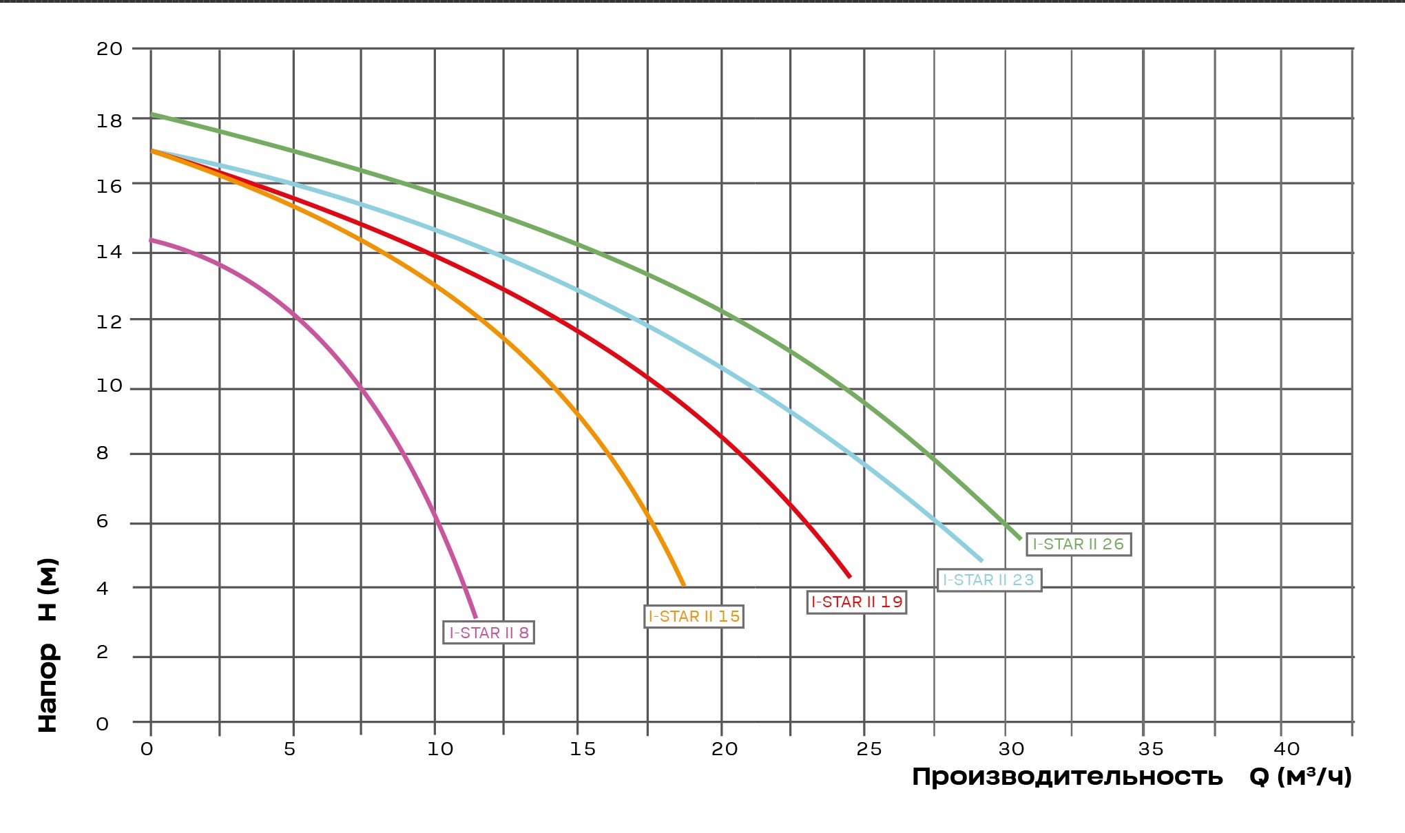 Производительность серии: от 8 до 26 м³/ч (в зависимости от модели) при напоре воды 8 метров.