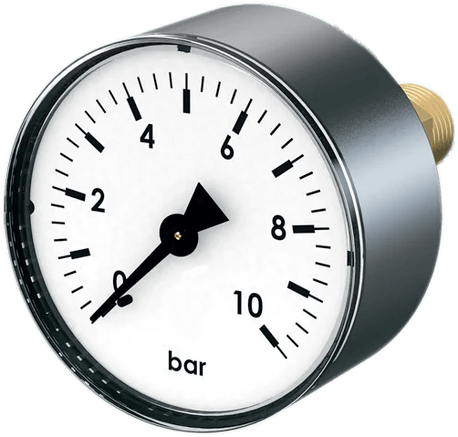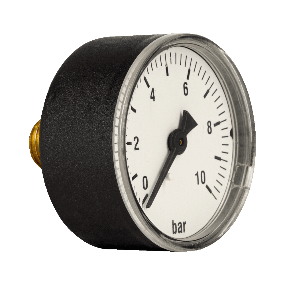 BWT Аксиальный манометр используется для измерения и визуального контроля созданного давления воды в замкнутых системах ХВС. У аксиального манометра присоединительный штуцер расположен соосно со стрелкой измерительной шкалы.