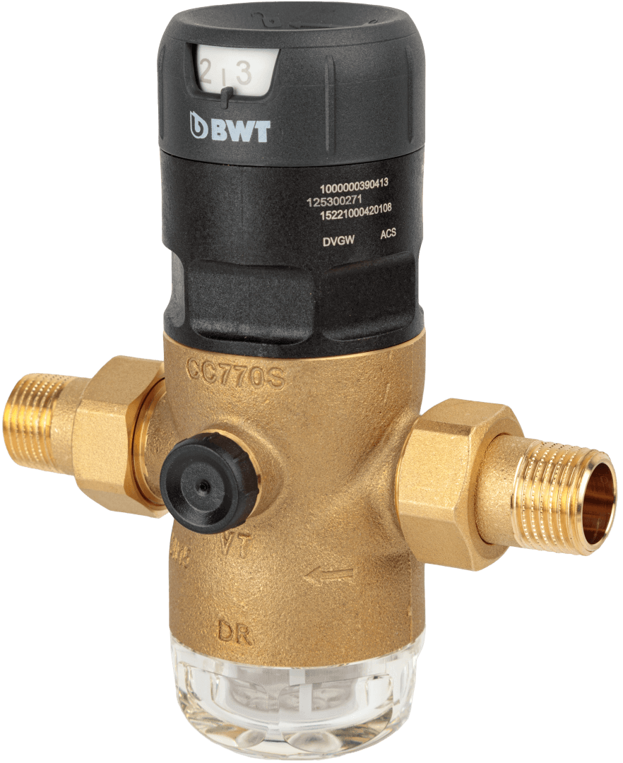 Большим преимуществом редуктора давления BWT D1 является возможность устанавливать его как на горизонтальный, так и на вертикальный трубопровод. Он будет работать в любом положении.