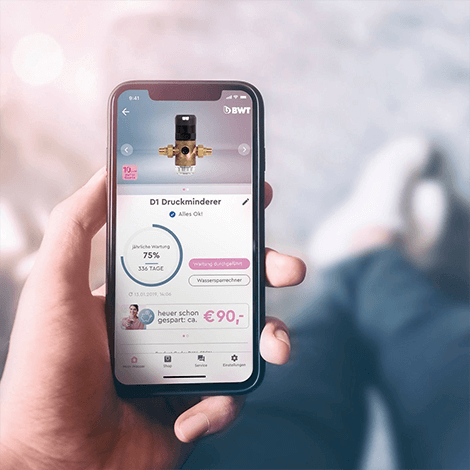 Регистрация в мобильном приложении BWT Best Water Home с калькулятором экономии воды и напоминанием о замене фильтр сетки