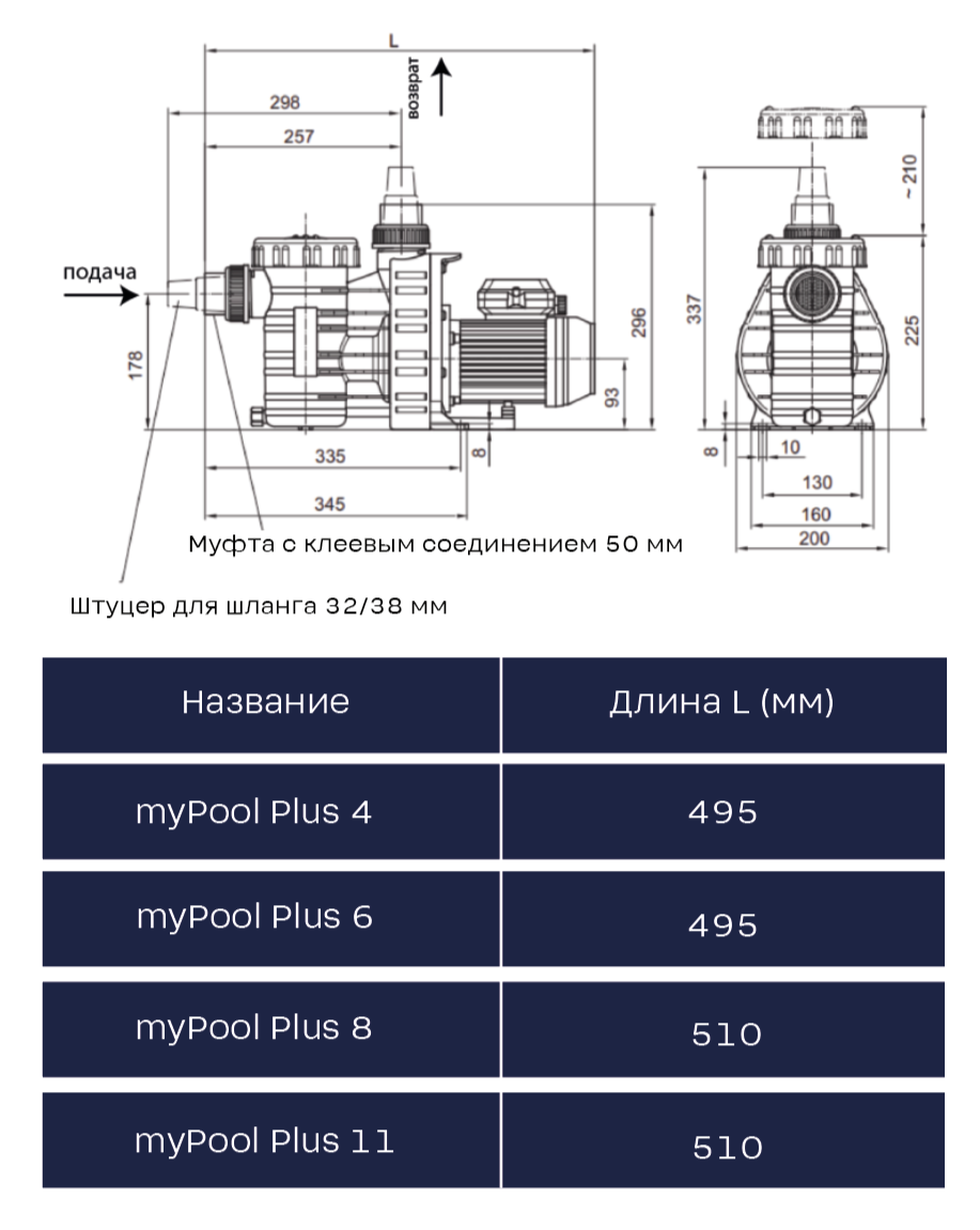 | Модель | Насос для басссейна BWT myPOOL Plus 4 | Насос для бассейна BWT myPOOL Plus 6 | Насос для бассейна BWT myPOOL Plus 8 | Насос для бассейна BWT myPOOL Plus 11 |