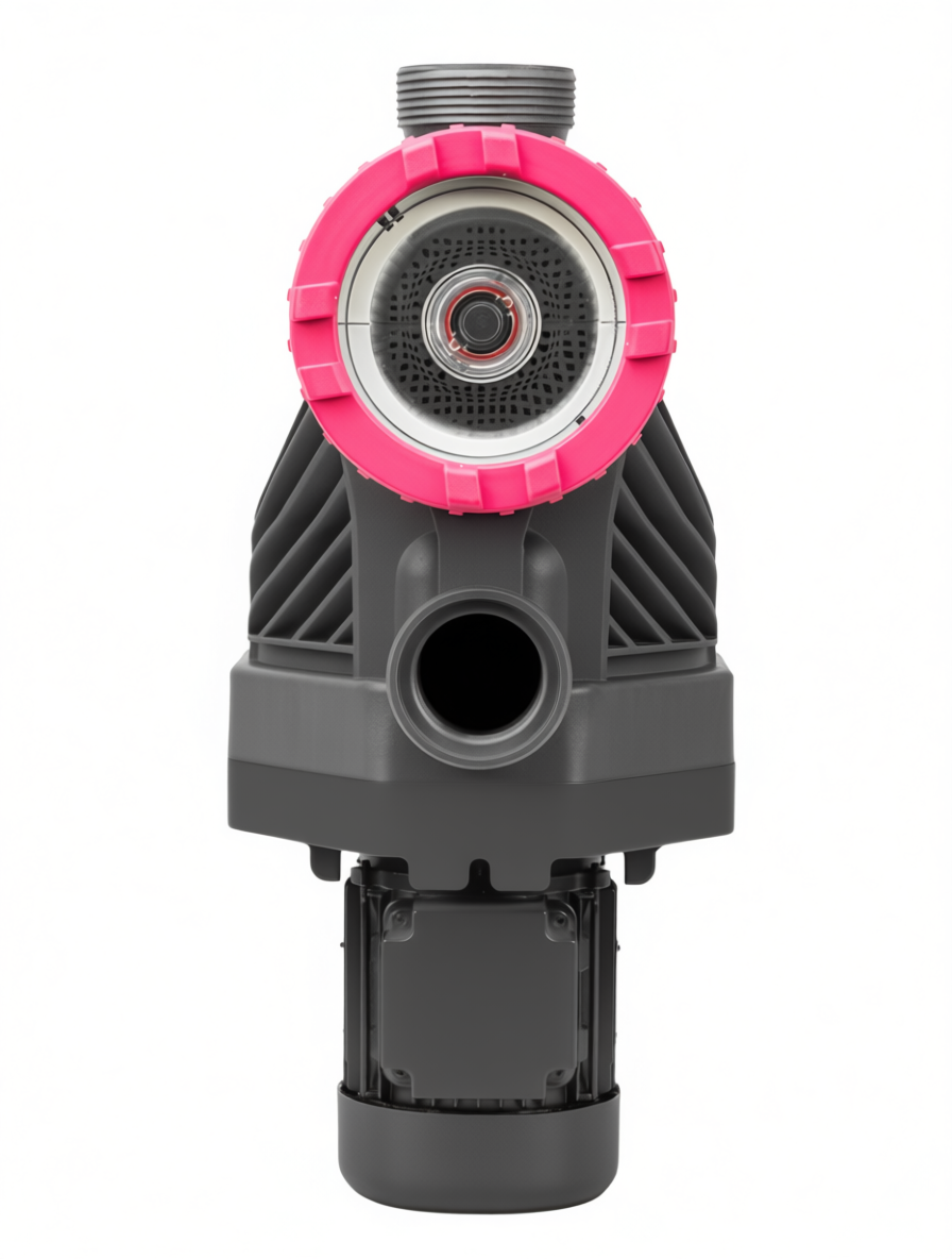 Конструкция насоса обеспечивает высокий уровень безопасности: механическое уплотнение смонтировано на защитной втулке из синтетической смолы, что полностью исключает контакт вала двигателя с водой и предотвращает утечку блуждающих токов. Корпус насоса и предфильтра выполнены из армированного стекловолокном полипропилена, что обеспечивает устойчивость к воздействию химических реагентов.