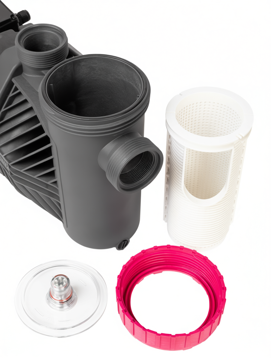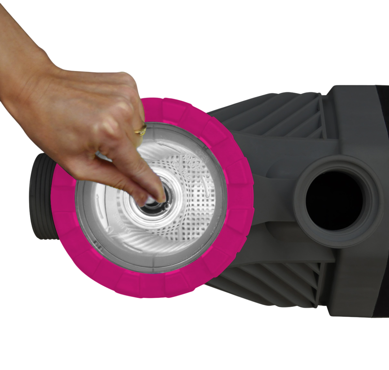 Крышка предфильтра оснащена светодиодной подсветкой, что позволяет визуально контролировать его заполнение даже в слабо освещенном техническом помещении. Корзина предфильтра разбирается на две секции, что значительно упрощает ее очистку.